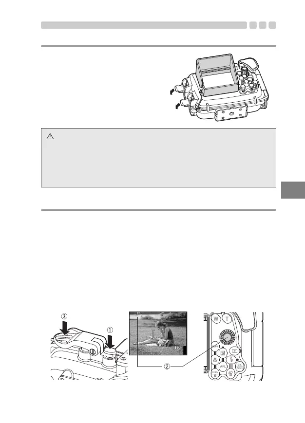 3 방수 케이스의 셔터 레버를 조작해서, 카메라의 셔터가 조작 가능합니