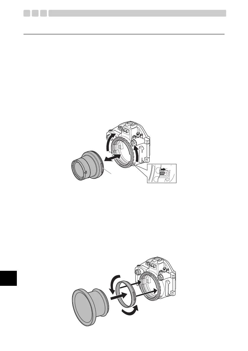 Si resulta difícil extraer el adaptador de puerto, gire el puerto del objetivo para aflojarlo mientras está