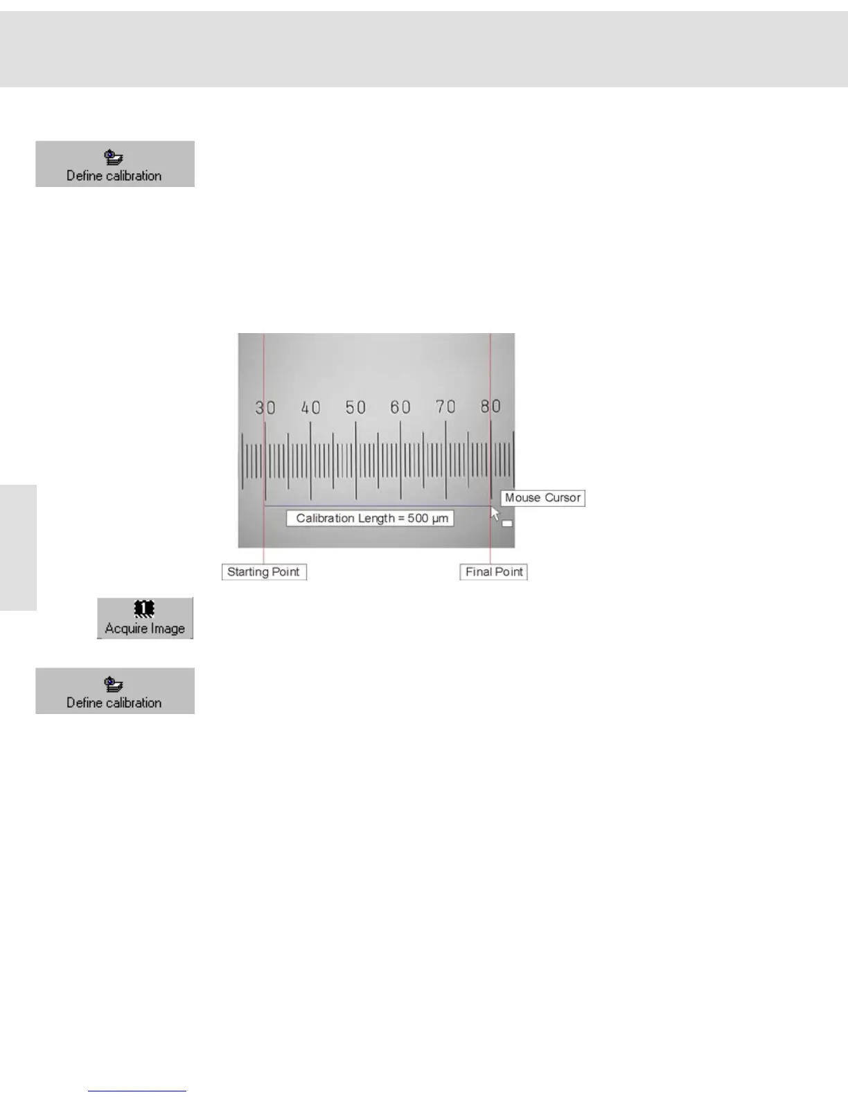 The image acquisition software enables you to calibrate images after acquisition.