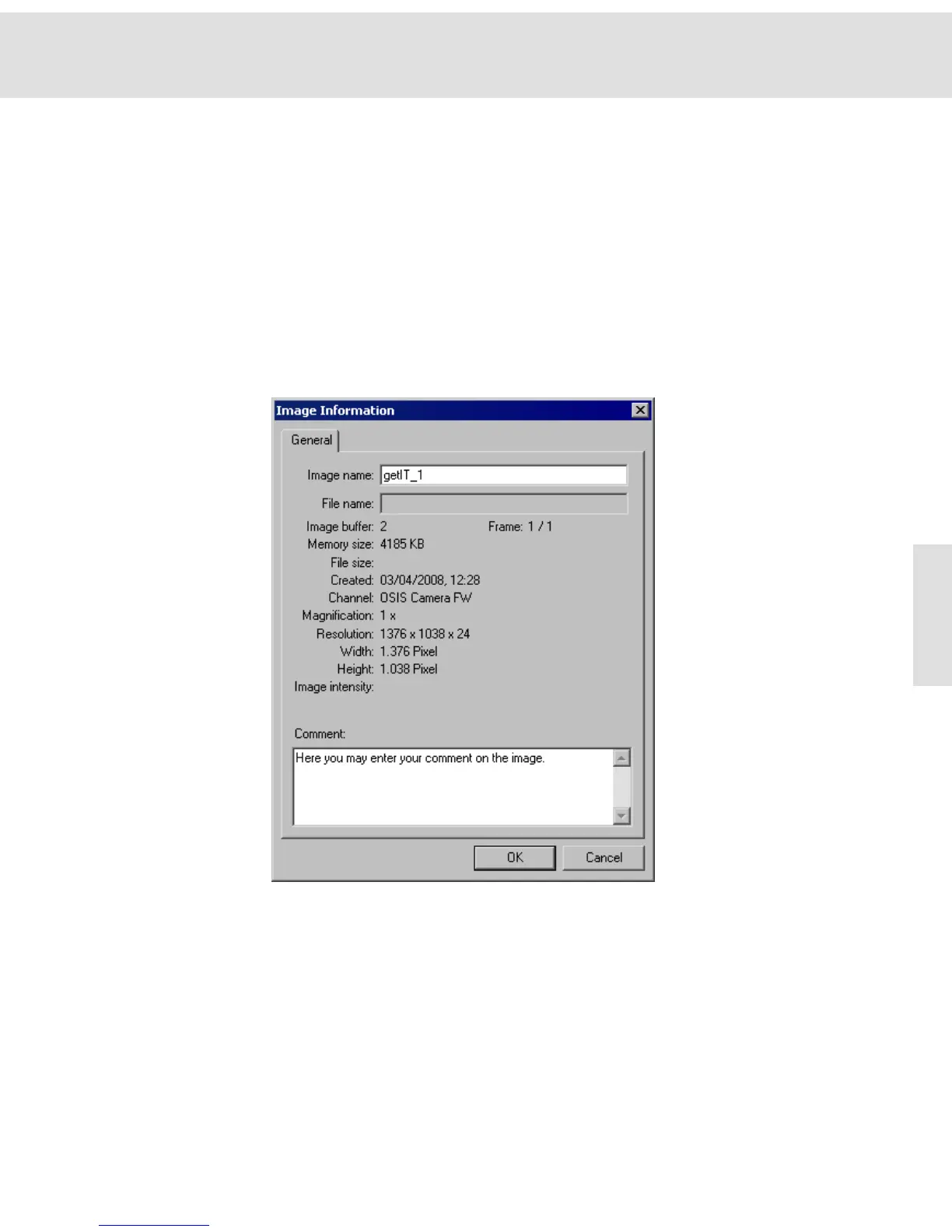 Doubleclick the image buffer to alter the name of the image, to add a comment