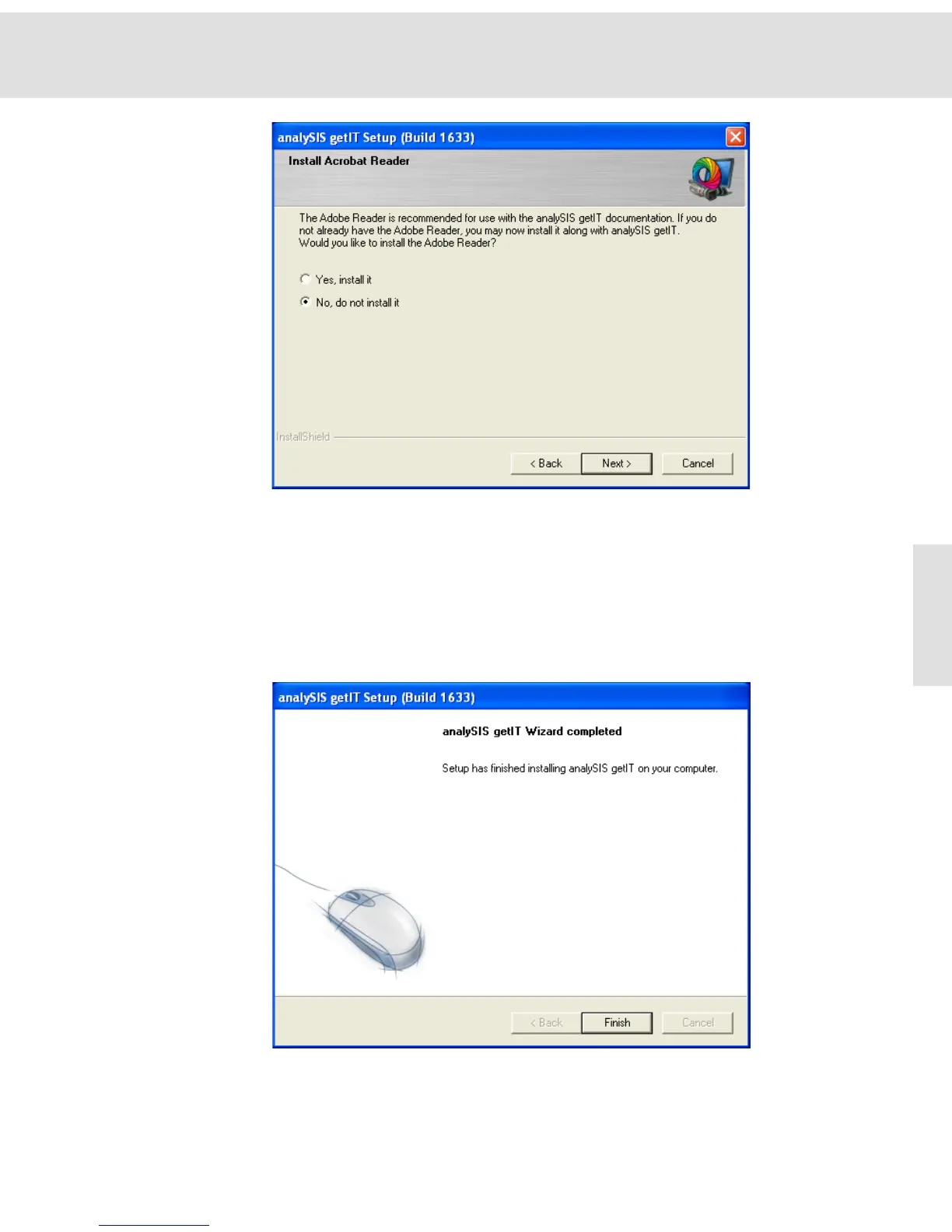 " The getIT image acquisition software has now been installed.