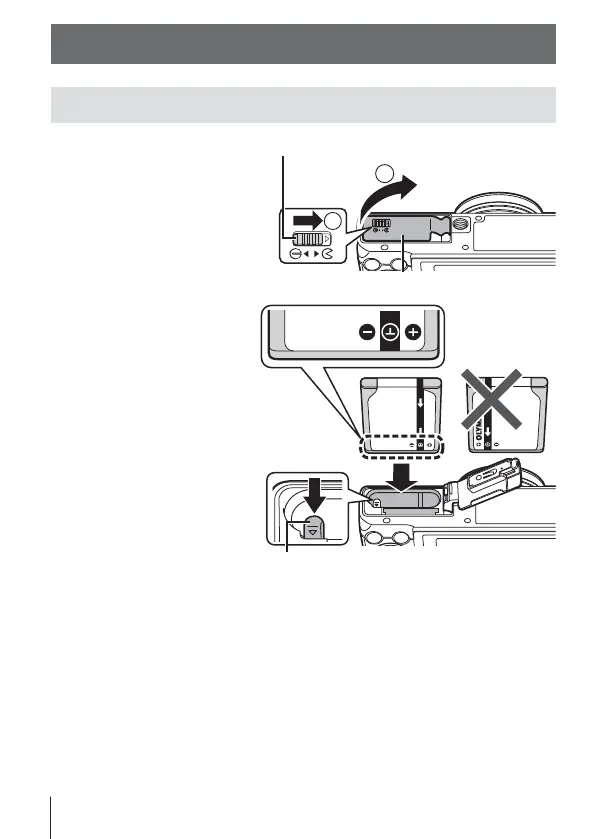• Slide the battery lock knob in the direction of the arrow to unlock, and