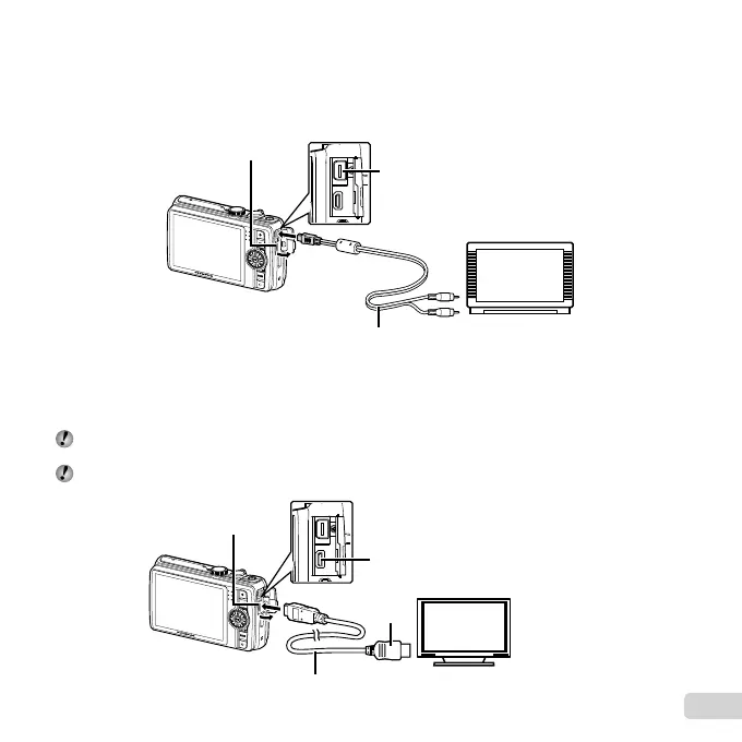 When the camera is connected to the computer by the USB cable, do not connect the HDMI cable to the camera.