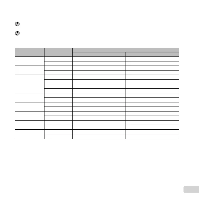The fi gures in the table below are the number of the storable pictures when using the internal memory formatted.