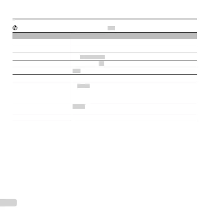 ● “List of settings available in each shooting mode” (p. 69), “List of