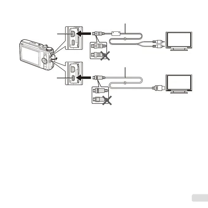 ● When the camera and TV are connected by both an AV cable and an HDMI cable, the HDMI cable will take