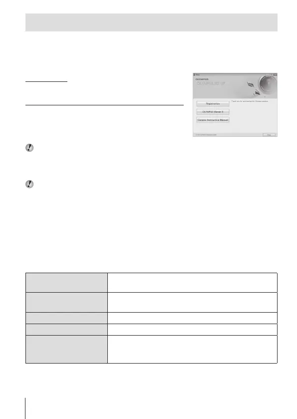 • Click the “OLYMPUS Viewer 3” button and follow the on-screen