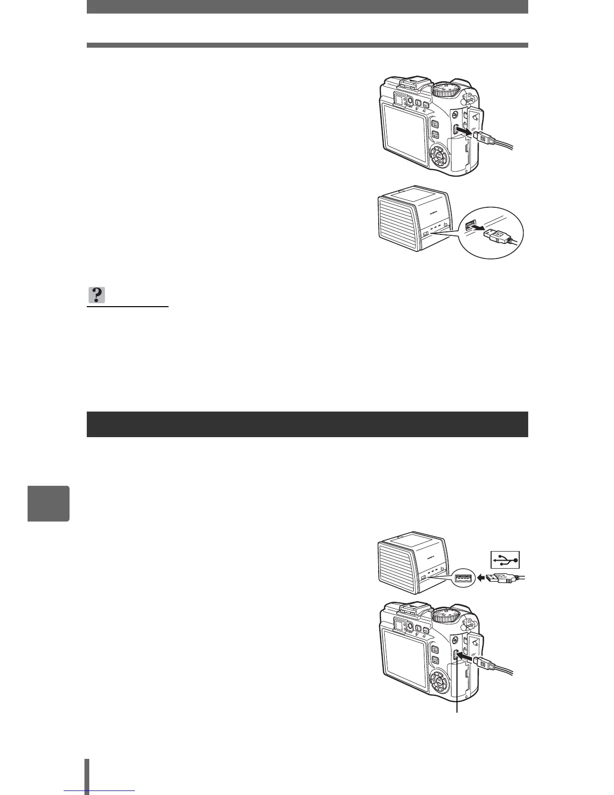 mode. With the camera turned off or in shooting mode, connect the USB cable.
