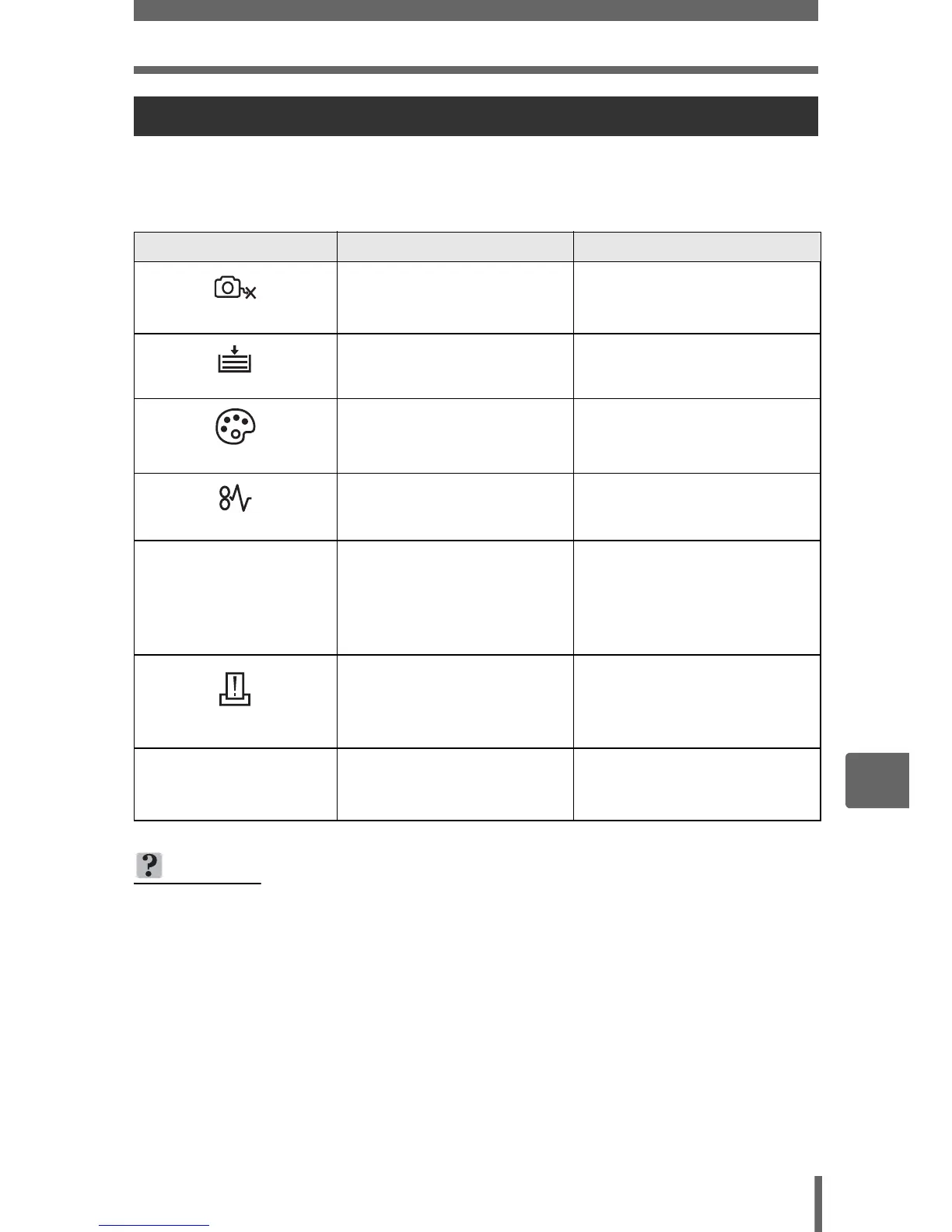 or printing, see the following table.