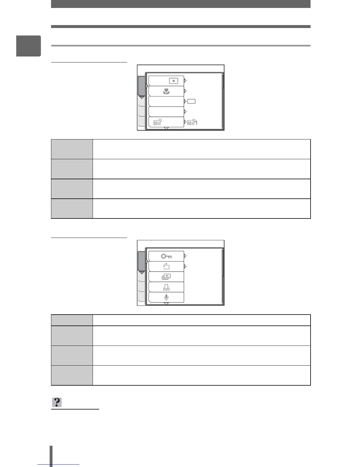 • For a list of mode menu items, see “Menu list” (P. 177).