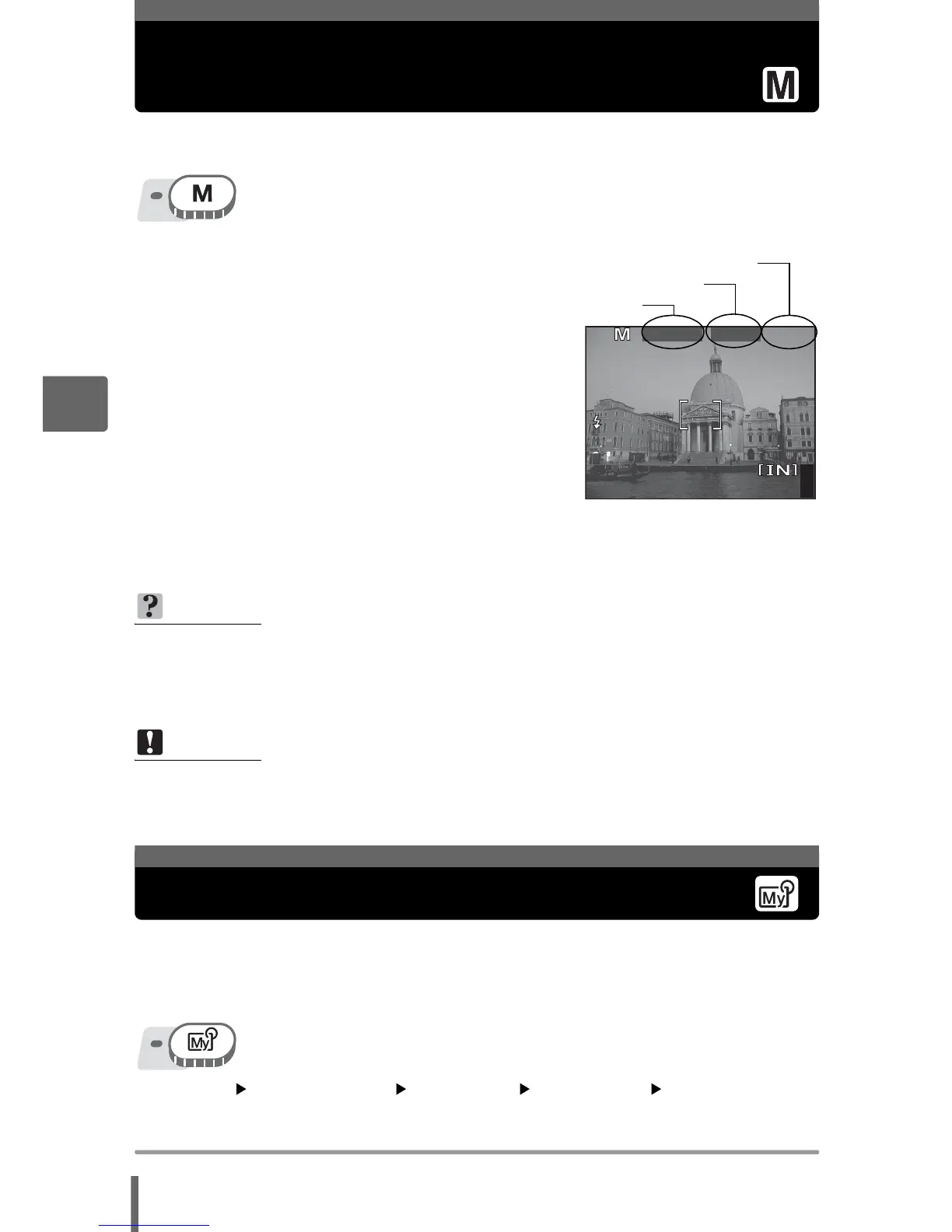 [d MY MODE 4] g“Using the menus” (P. 17)