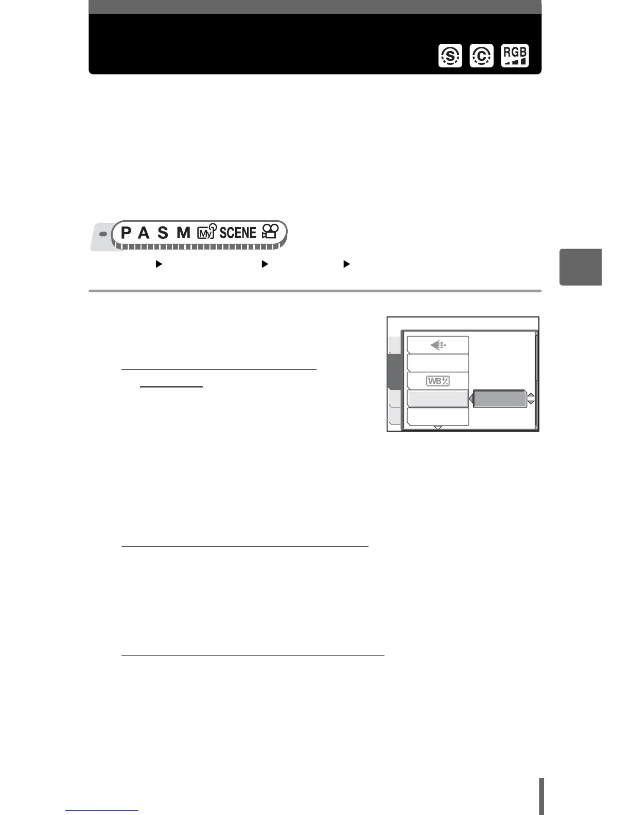 [CONTRAST] / [SATURATION] g“Using the menus” (P. 17)