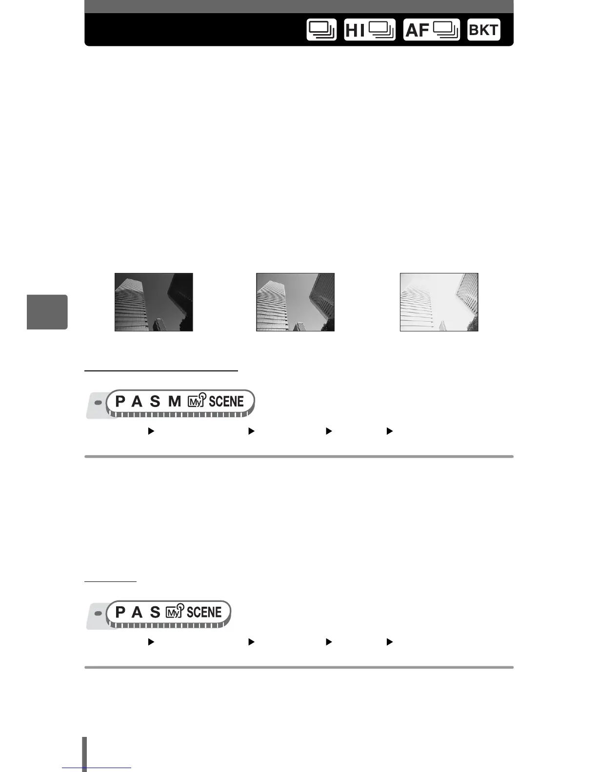 Ex: When the exposure differential is set to [±1.0] with [7] and the number of