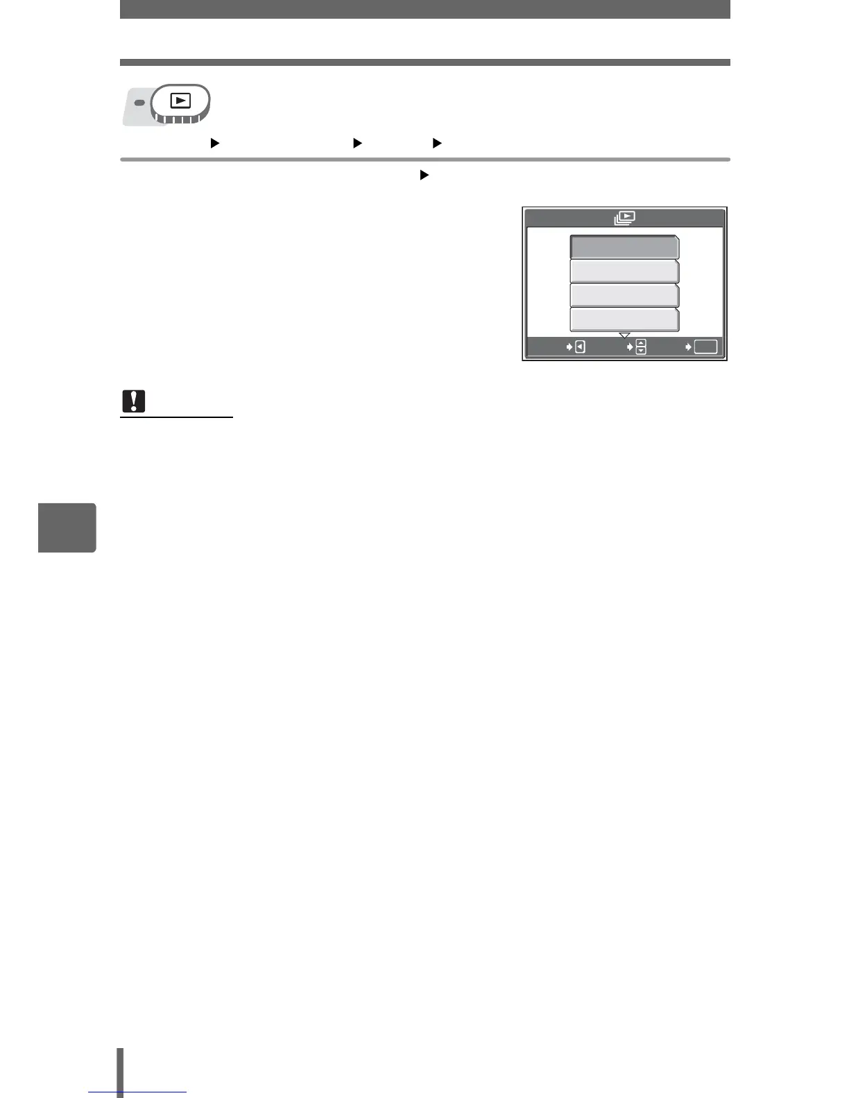 Top menu [MODE MENU] [PLAY] [m] g“Using the menus” (P. 17)