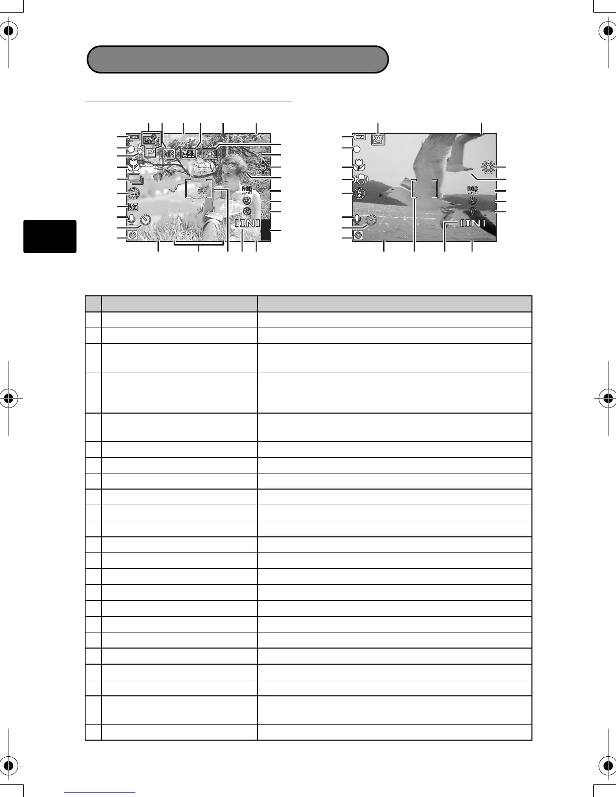 2 Green lamp { = Auto Focus Lock
