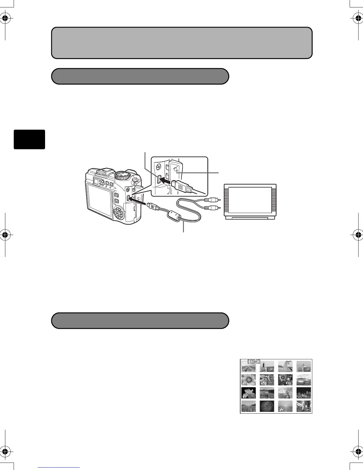 Use the AV cable provided with the camera to play back recorded images on your TV.