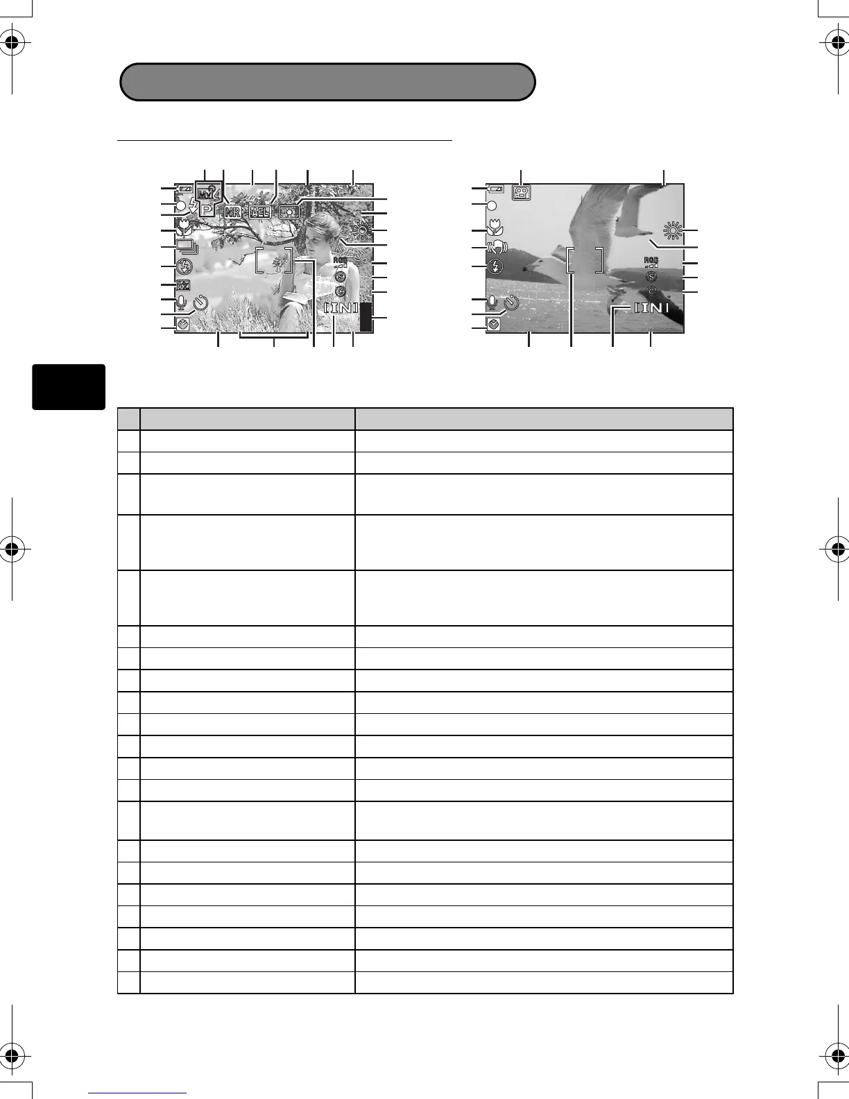 2 Voyant vert { = Verrouillage de la mise au point automatique