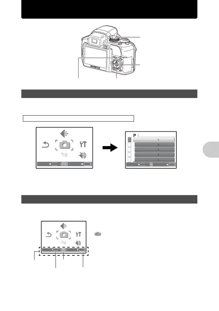 Au cours de l’utilisation des menus, les boutons et leurs fonctions respectives sont affichés dans la