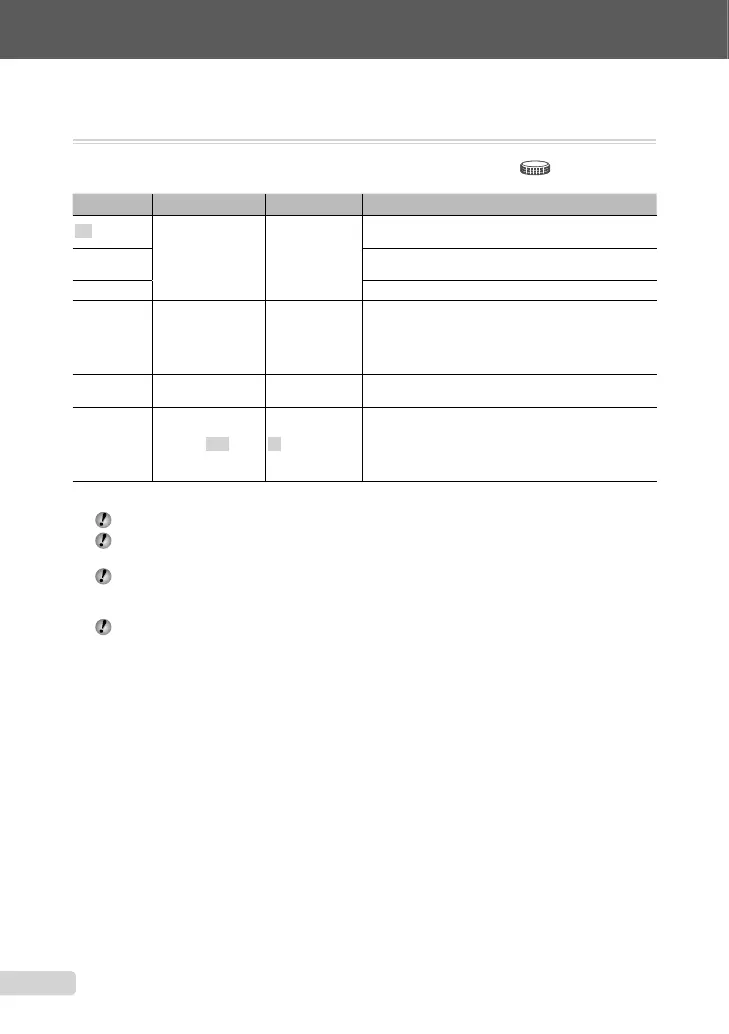 When set to [c] or []], fl ash is fi xed to $ (FLASH OFF) mode and the available [ISO] settings