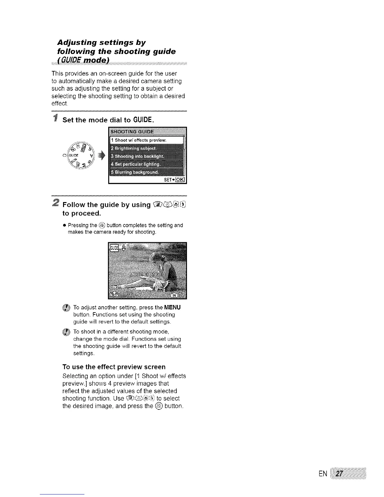 Set the mode dial to GUIDE.