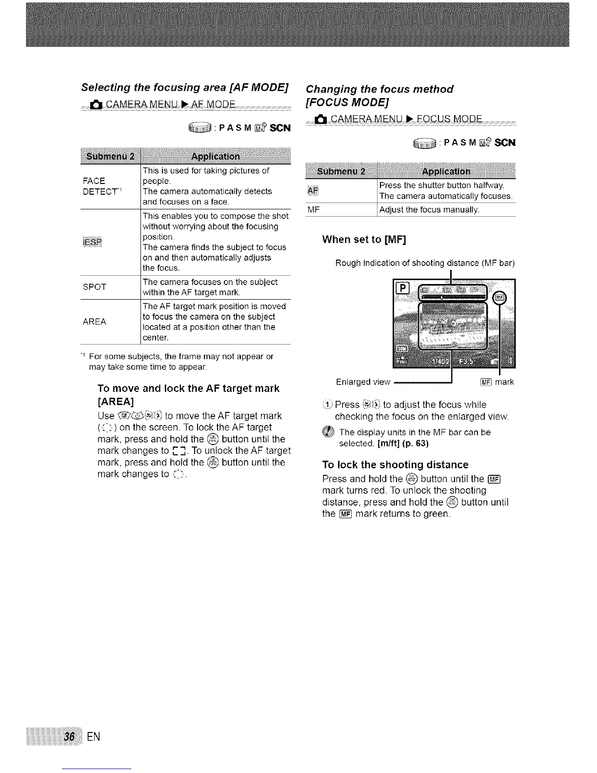 Selecting the focusing area [AF MODE] Changing the focus method