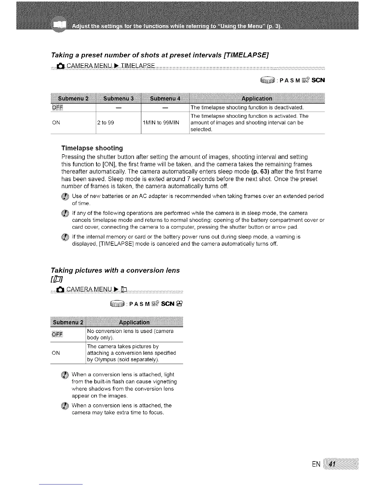 displayed, [TIMELAPSE] mode is canceled and the camera automatically turns off.
