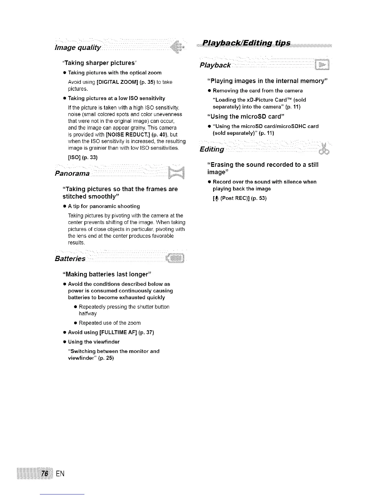 Avoid using [DIGITAL ZOOM] (p. 35) to take