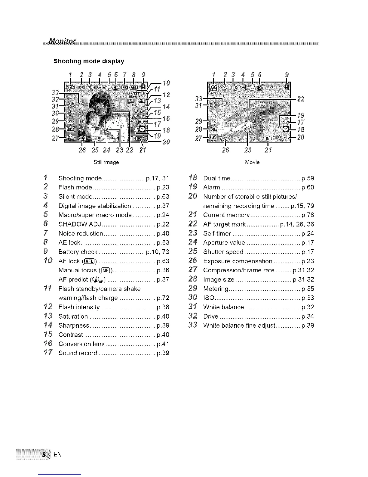 1 Shooting mode ........................ p.17, 31