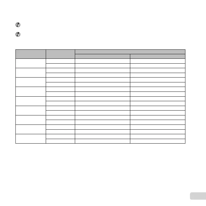The fi gures in the table below are the number of the storable pictures when using the internal memory formatted.