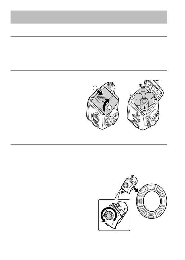 Compruebe que la cámara y el macrofl ash están apagados. Poner o quitar el