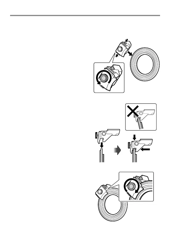 レンズグに押し当ててかみ込ませま
