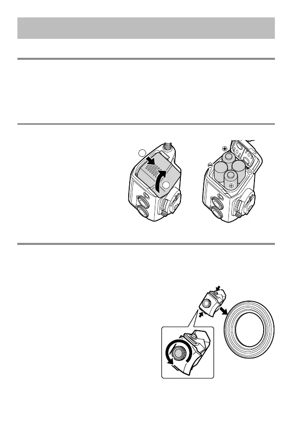 確認相機與微距閃光燈都已經關閉。閃光燈或相機開啟時安裝或卸除微距閃光燈