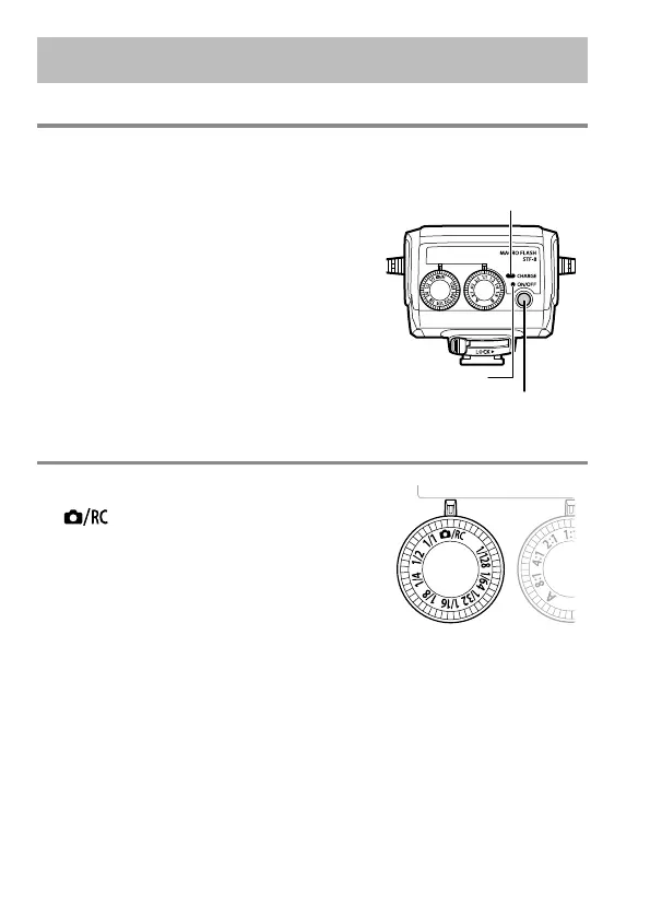 將微距閃光燈安裝⾄相機,然後開啟相機與微距閃光燈。
