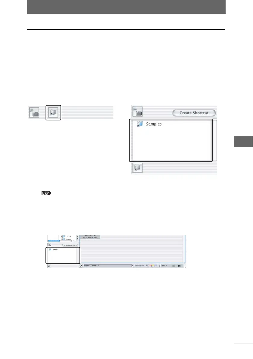 Double-click a registered shortcut to jump to that folder in the folder tree. You can