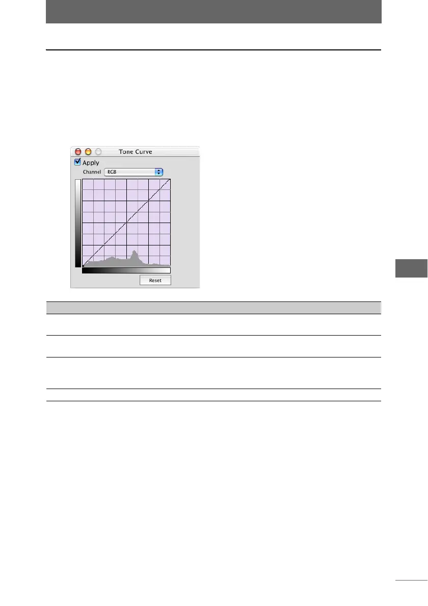 Tone Curve Click and specify an item on the tone curve to reduce a