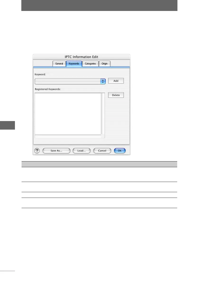 1 Click the [Keywords] tab on the [IPTC Information Edit] dialog