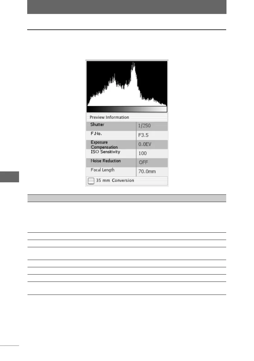 This area displays the shooting information of the shot image (the image shown in