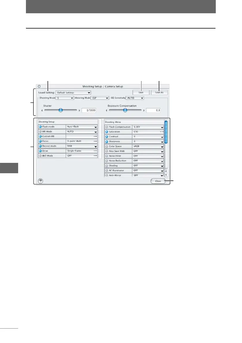 selected in the [Shooting Setup / Camera Setup] dialog box.