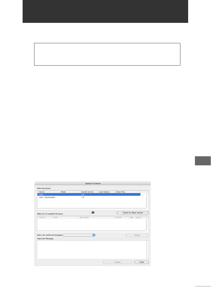 You can update the firmware for the Olympus E-System body, lens, and flash (if