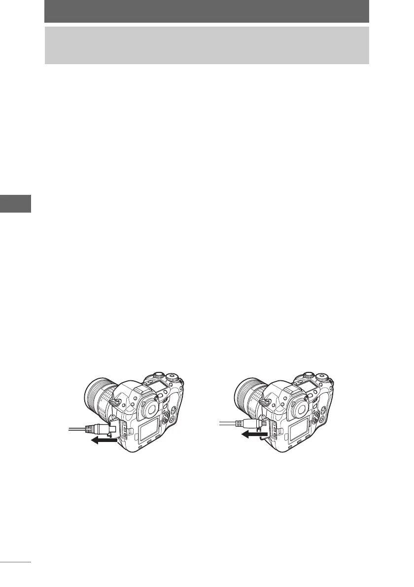 3 Remove the USB or IEEE1394 (FireWire) cable from the camera.