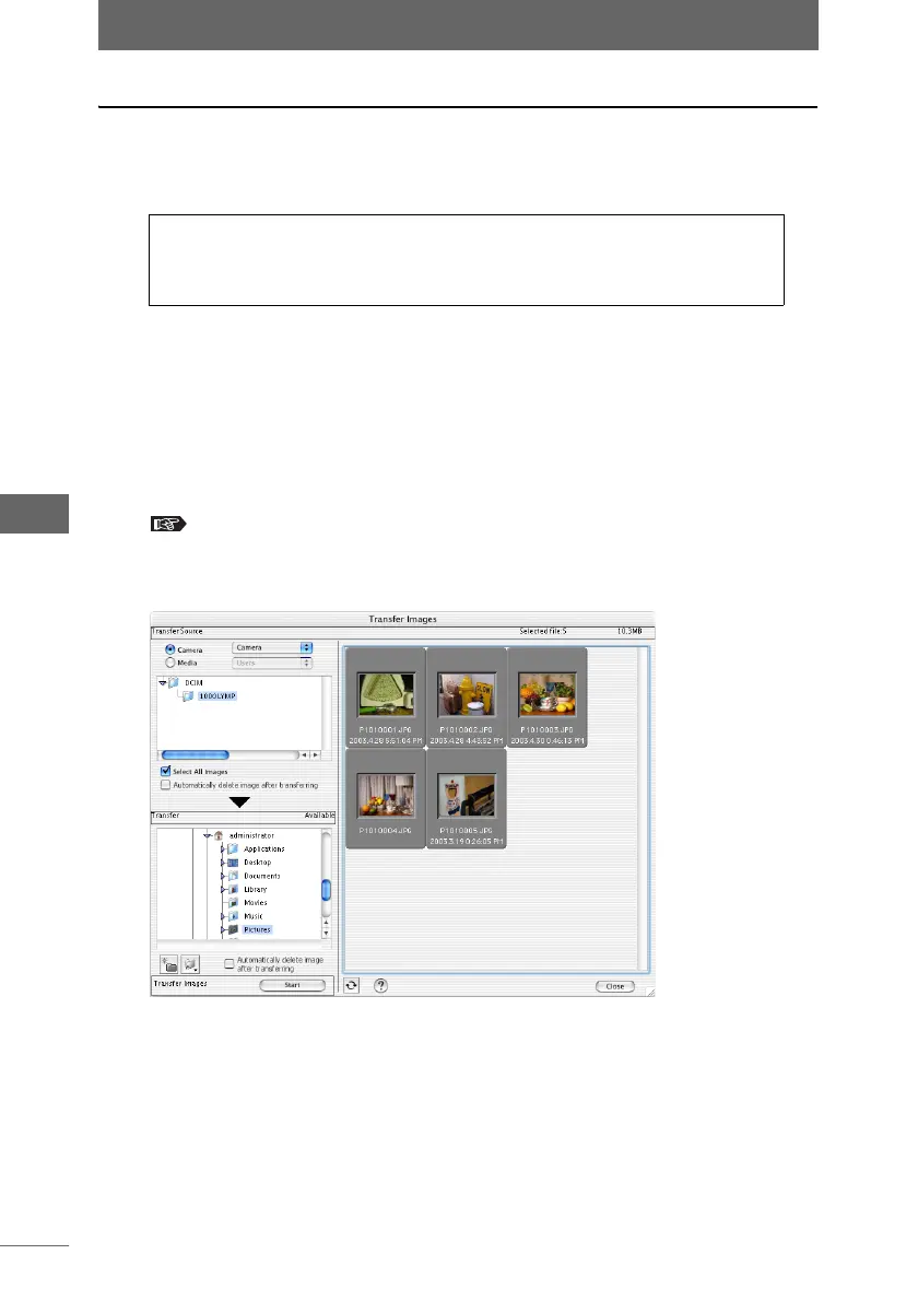 A list of subfolders in the [DCIM] folder appears in the transfer source folder tree.