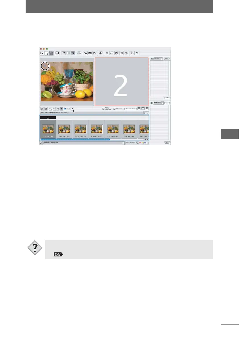 “Dividing images” P.68, “Confirming and saving divided images” P.70