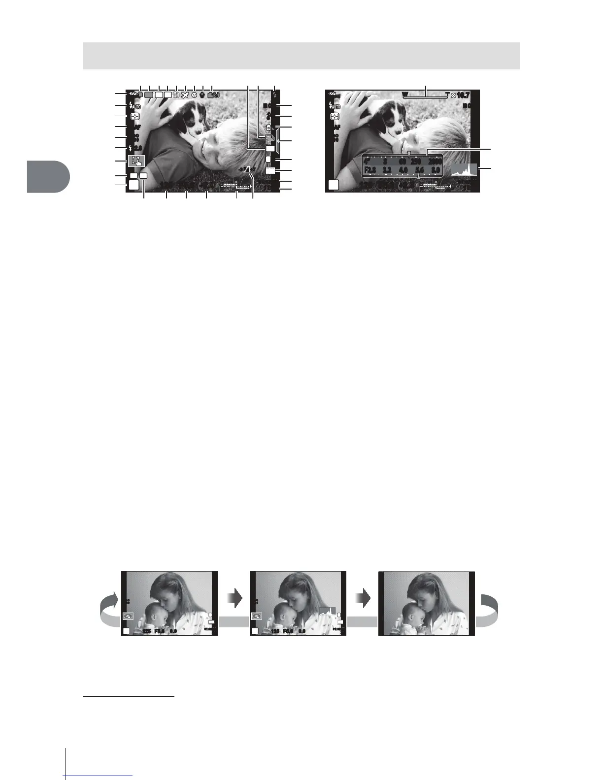 Press the INFO button to choose the information displayed when shooting.