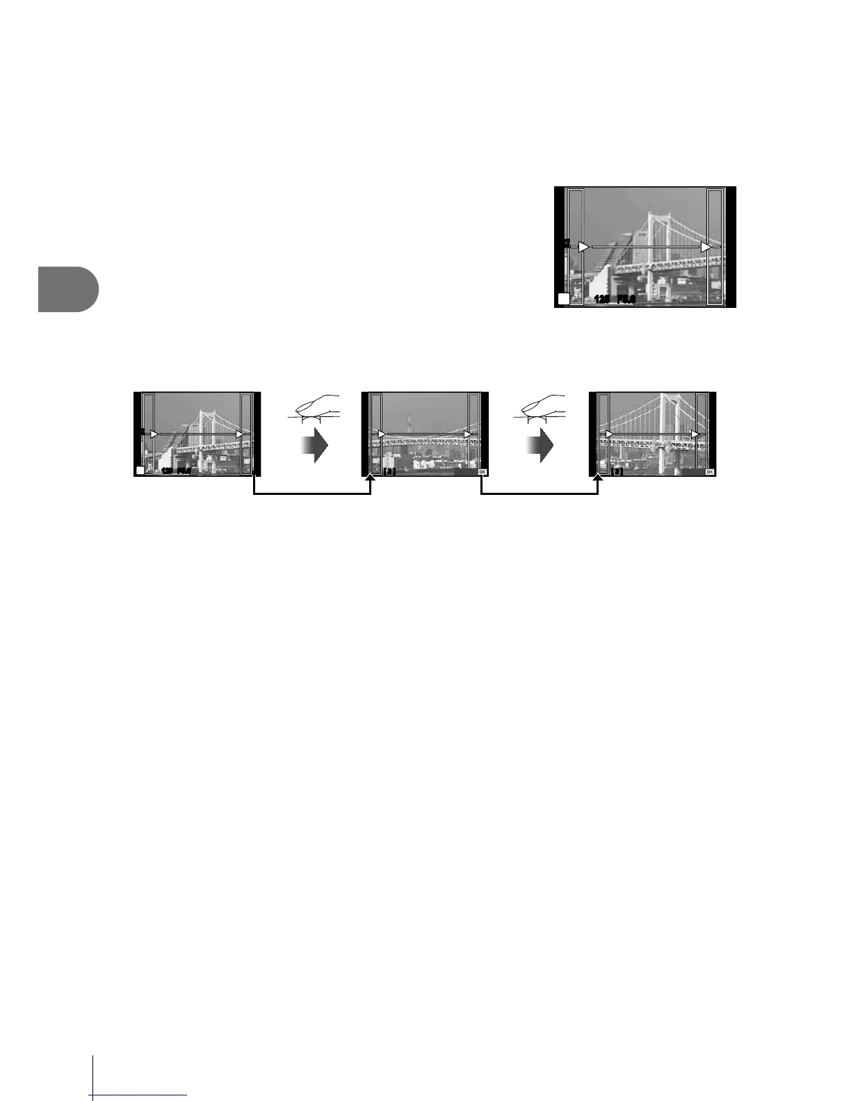 • During panorama shooting, the image previously taken for position alignment will not be