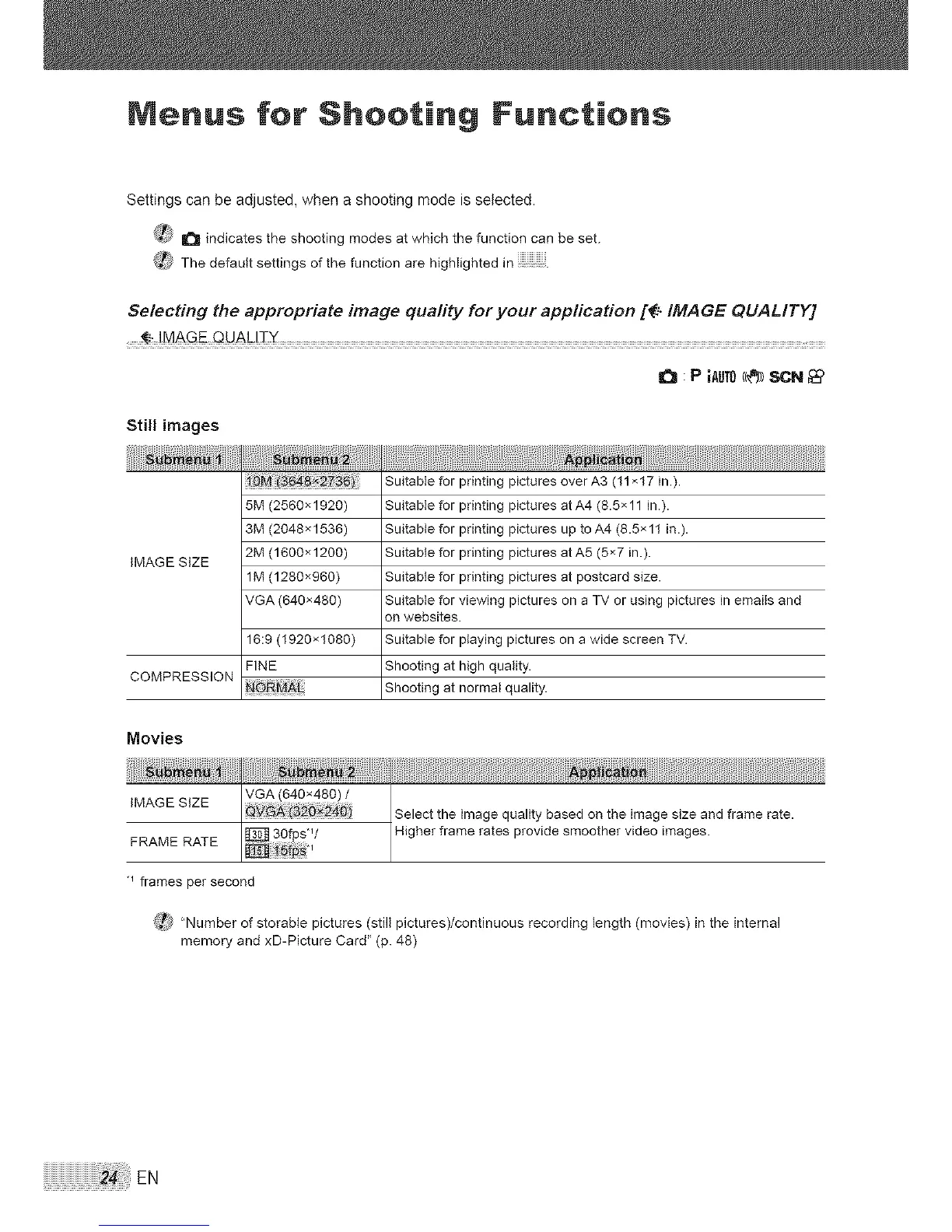 Selecting the appropriate image quafity for your application [_. IMAGE QUALITY]