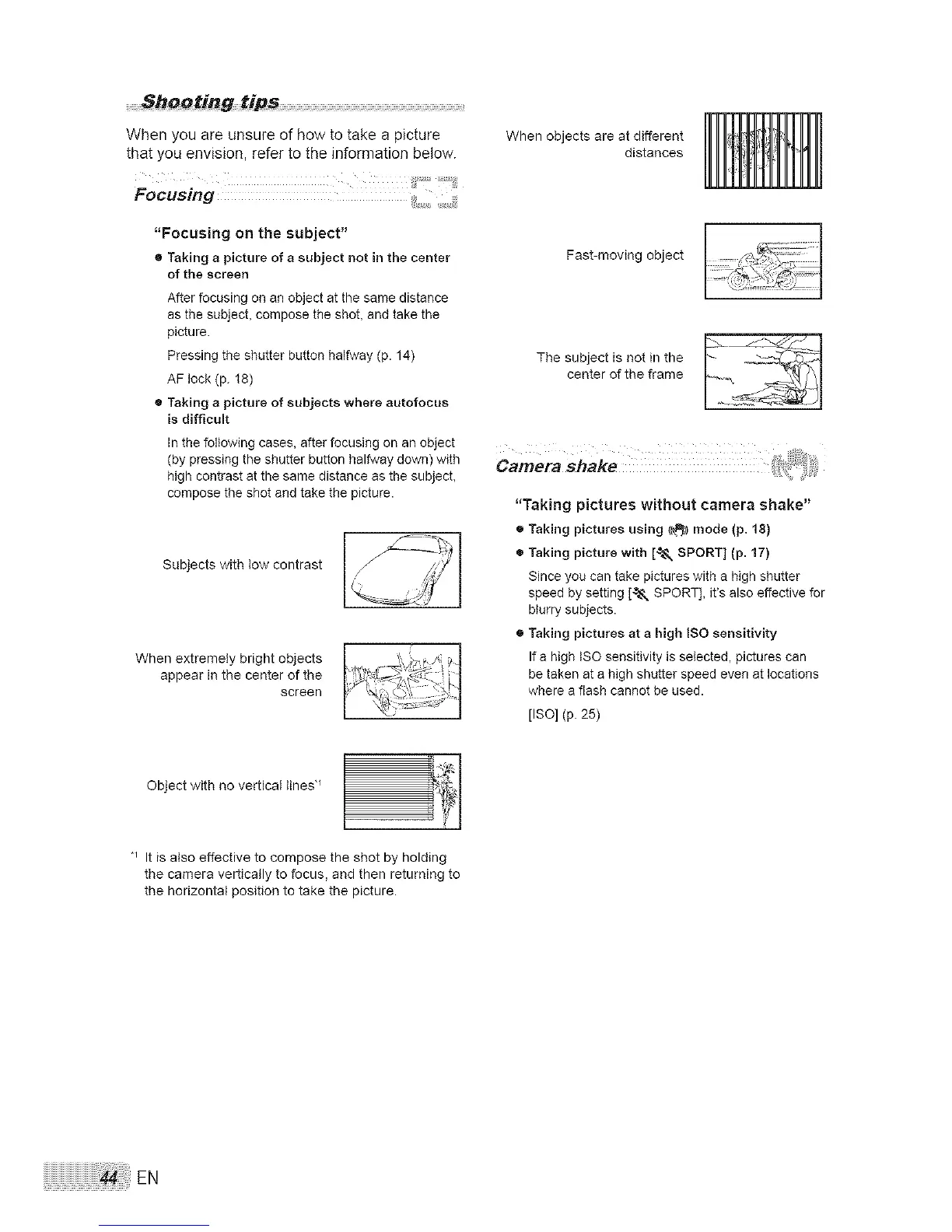 ® Taking picture with [_, SPORT] (p. 17)