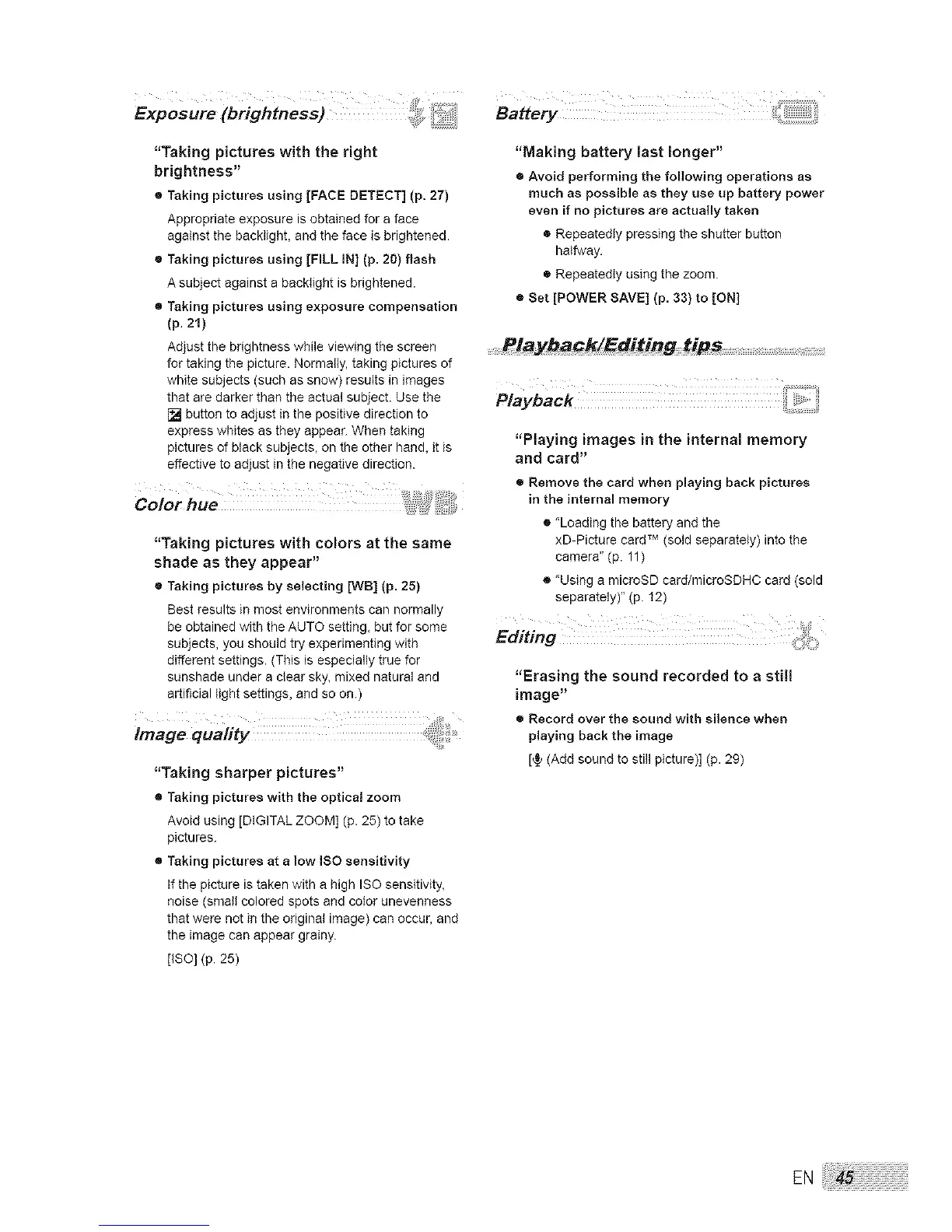 Avoid using [DIGITAL ZOOM] (p. 25) to take