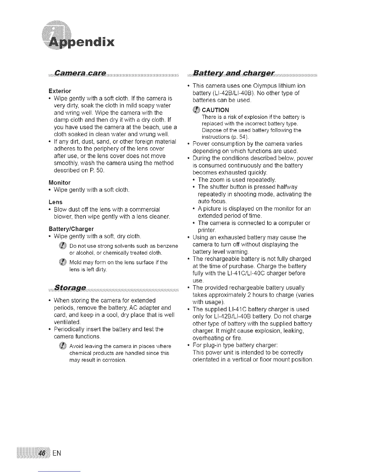 ........Camera care ........Battery and charger