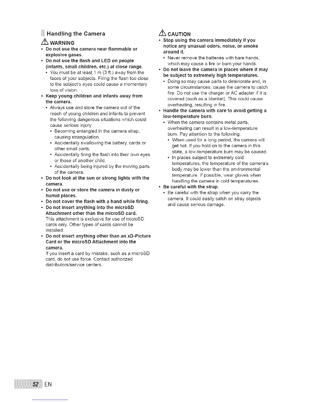 • Handle the camera with care to avoid getting a