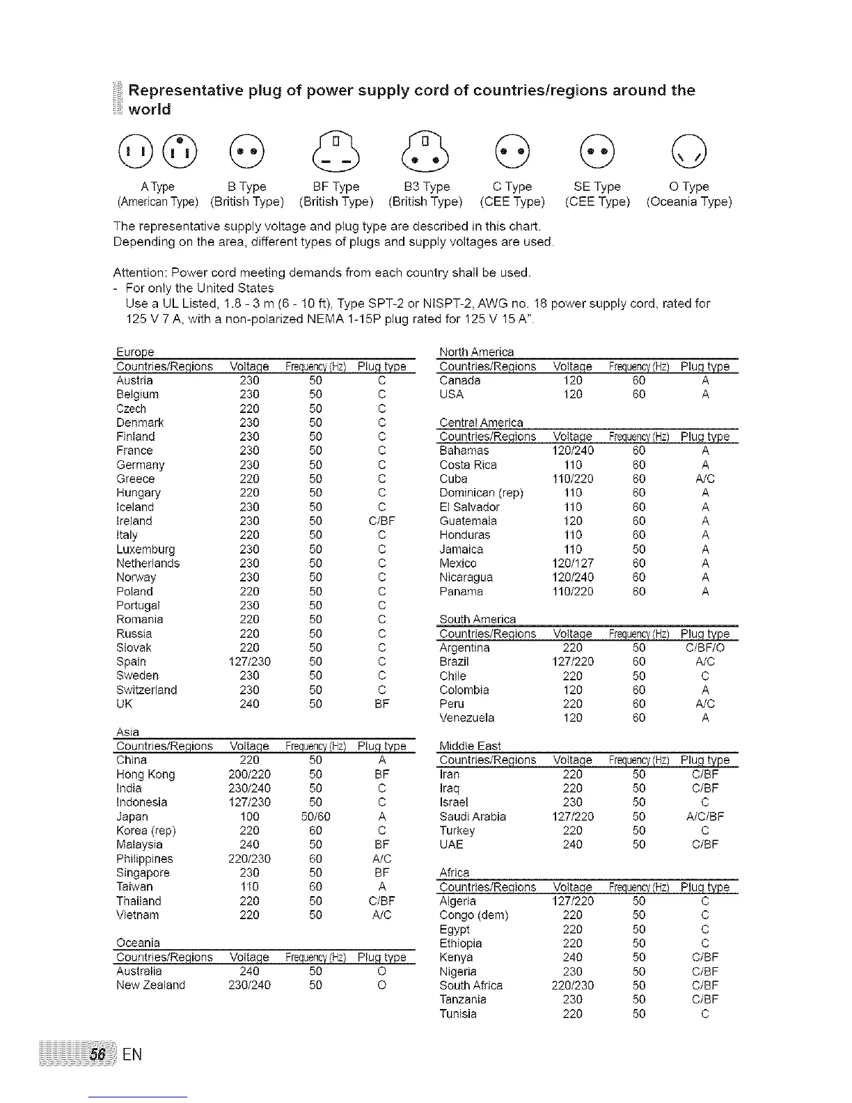 Countries/Regions Volta,qe Frequency(Hz) Plug type